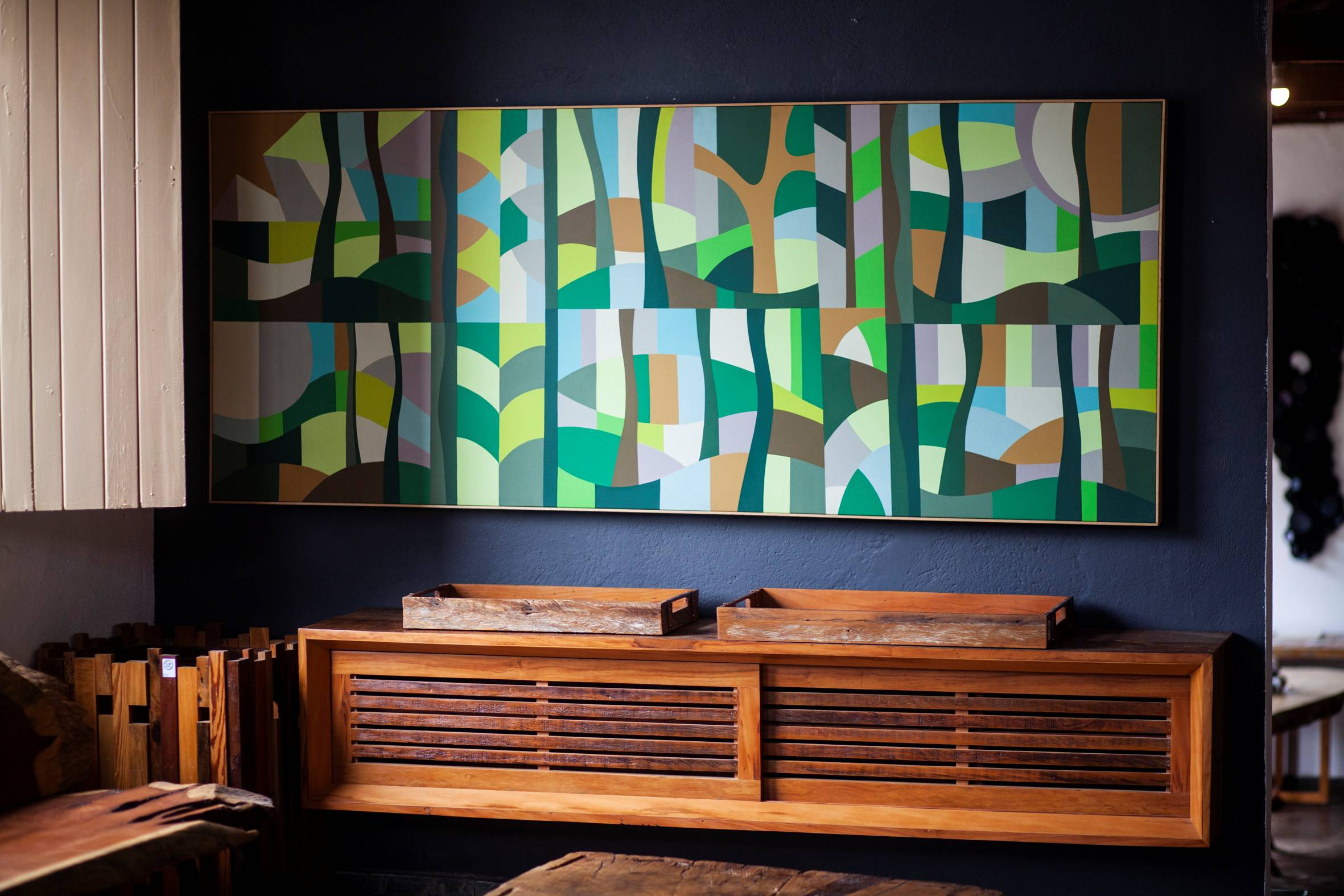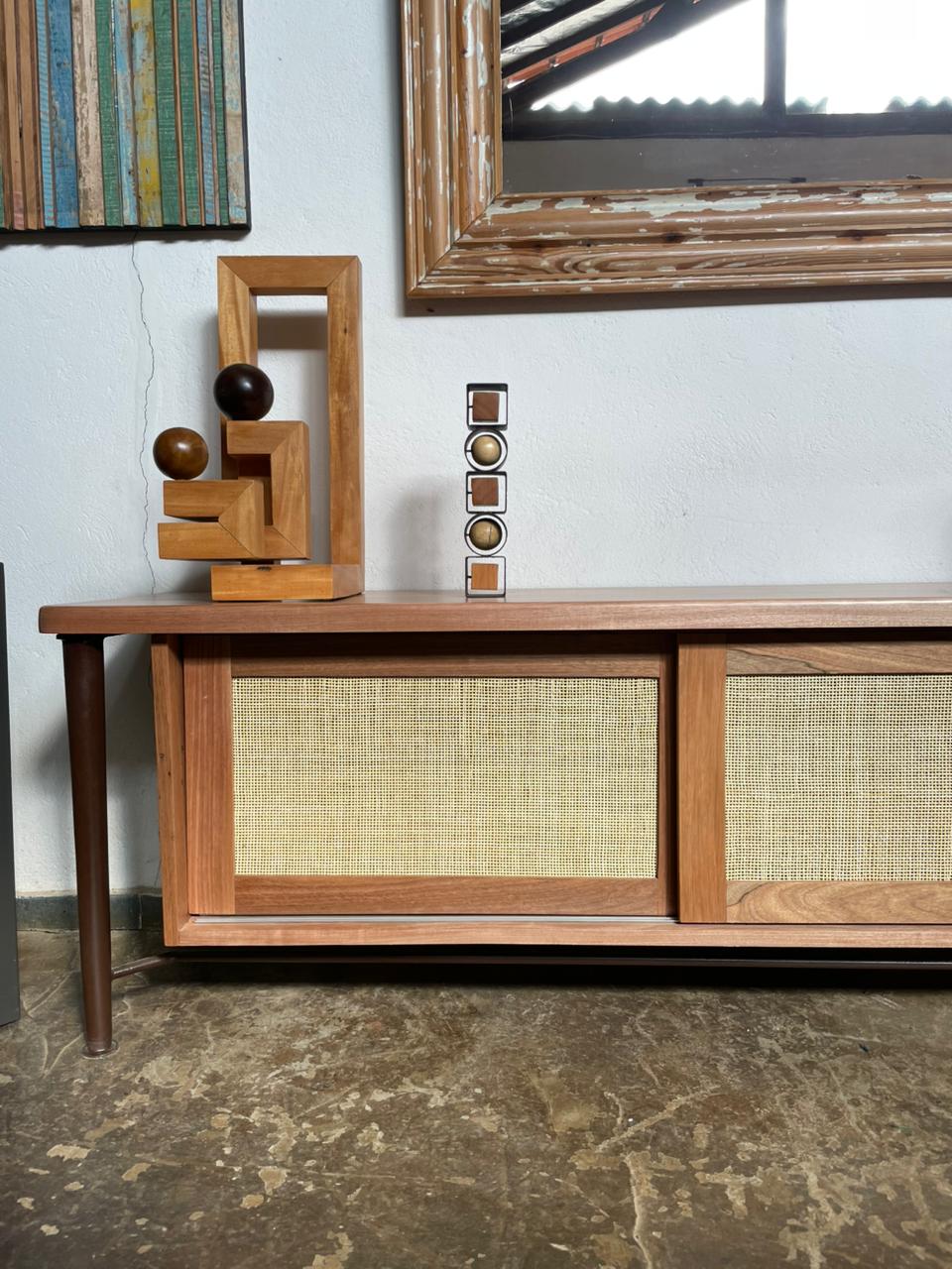 Desenho original, confeccionado em pranchas orgânicas de peroba rosa, que revelam veios marcantes e formas naturais da madeira maciça. Os pés cônicos em aço carbono criam um contraste preciso e contemporâneo, conferindo leveza visual à peça. Um móvel que traduz elegância, sofisticação e aconchego, pensado para ambientes que valorizam matéria-prima nobre, estética atemporal e acabamento refinado. Pode ser feito sob medida