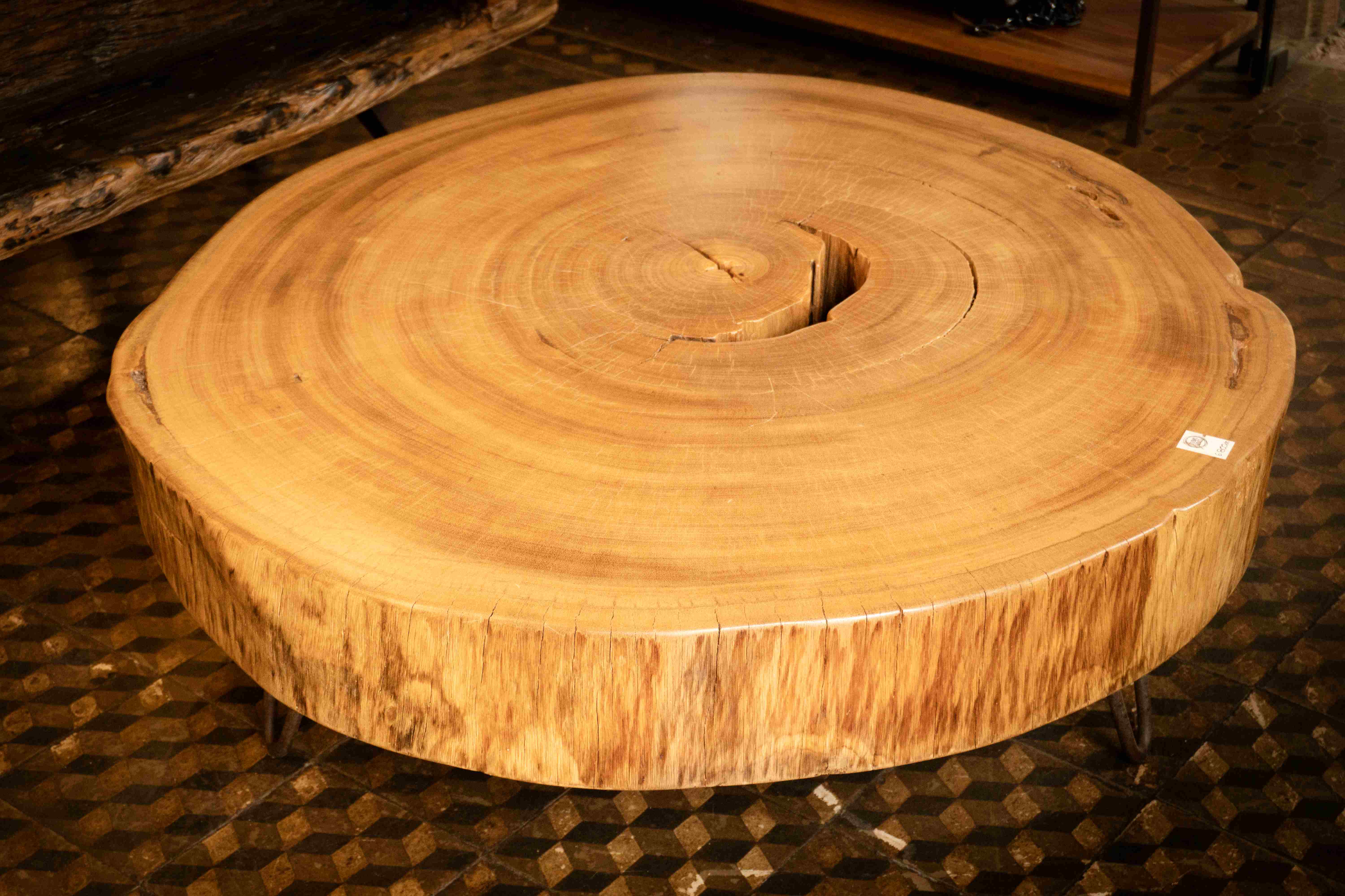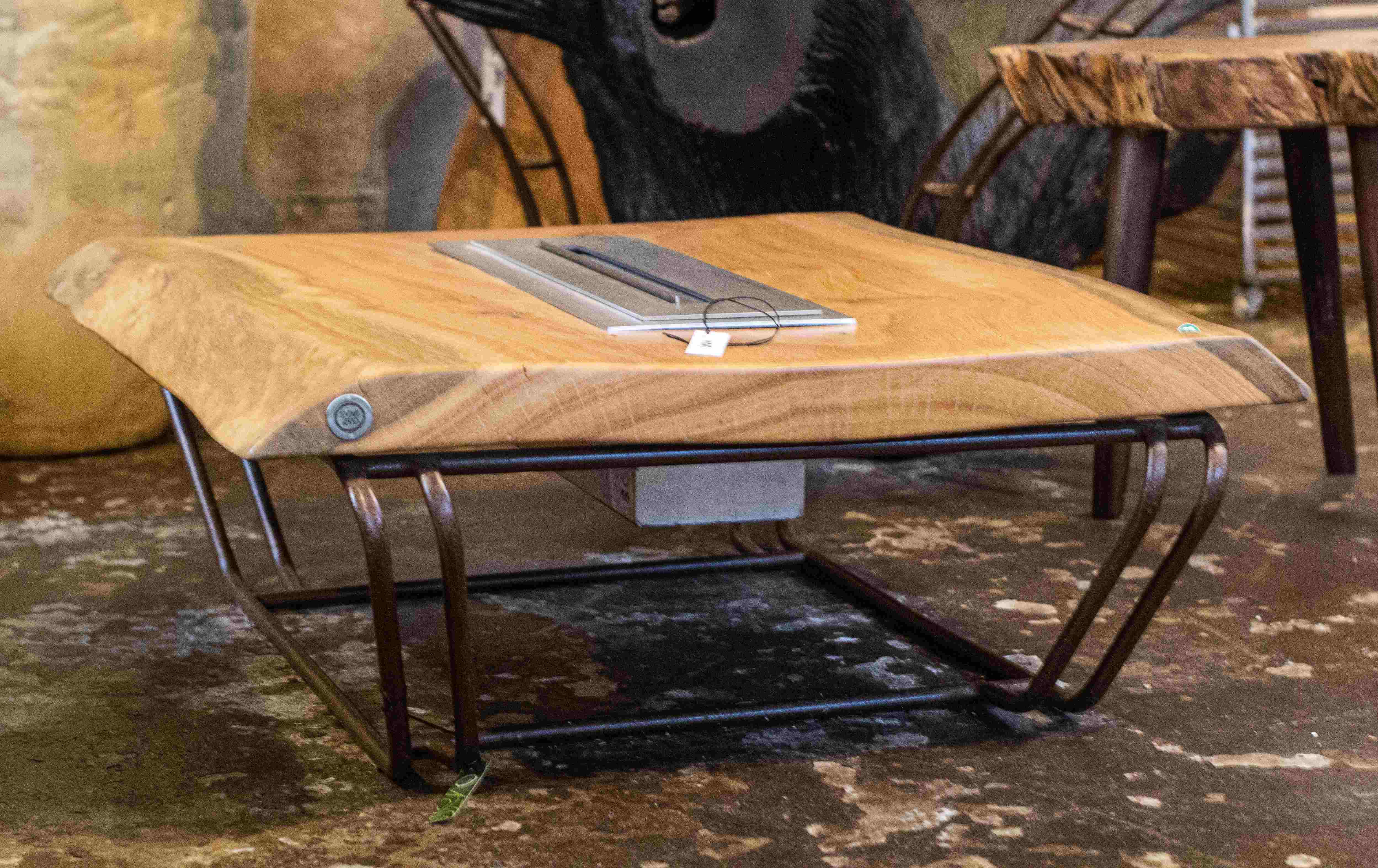Com desenho original, a mesa é confeccionada em madeira maciça Peroba Rosa, pés em aço carbono e detalhe em peneira de brita no tampo. Produzida integralmente com materiais de reaproveitamento, a peça traduz sustentabilidade, design e elegância.