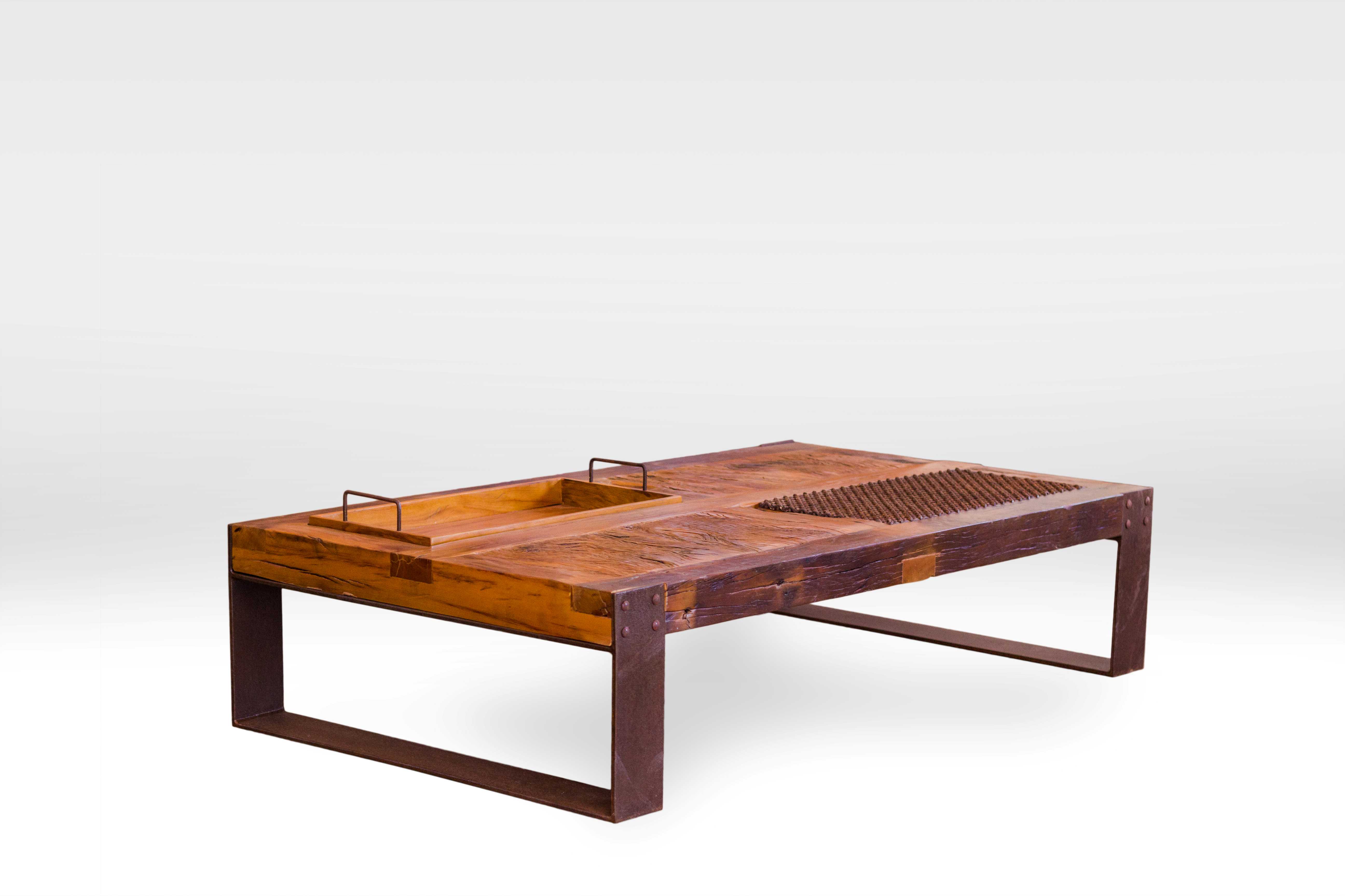 Peça confeccionada em madeira maciça, pés em aço carbono com. Peça única