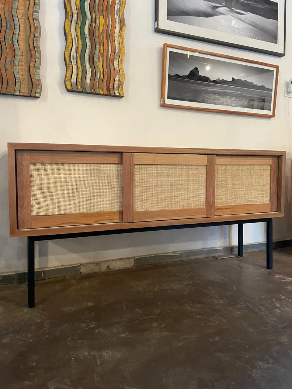 O Rack Palinha traduz a elegância do rústico contemporâneo em uma peça leve e atemporal. Confeccionado em madeira maciça, com detalhes em palinha indiana natural e base em aço carbono, equilibra textura, solidez e transparência visual. Um móvel de desenho original, pensado para valorizar projetos de alto padrão. Pode ser feito sob medida.